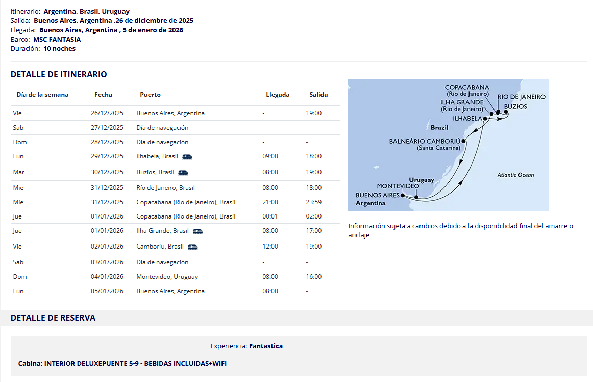 26 de diciembre 2026 | Embarque en Buenos Aires. Especial Año nuevo en Río.